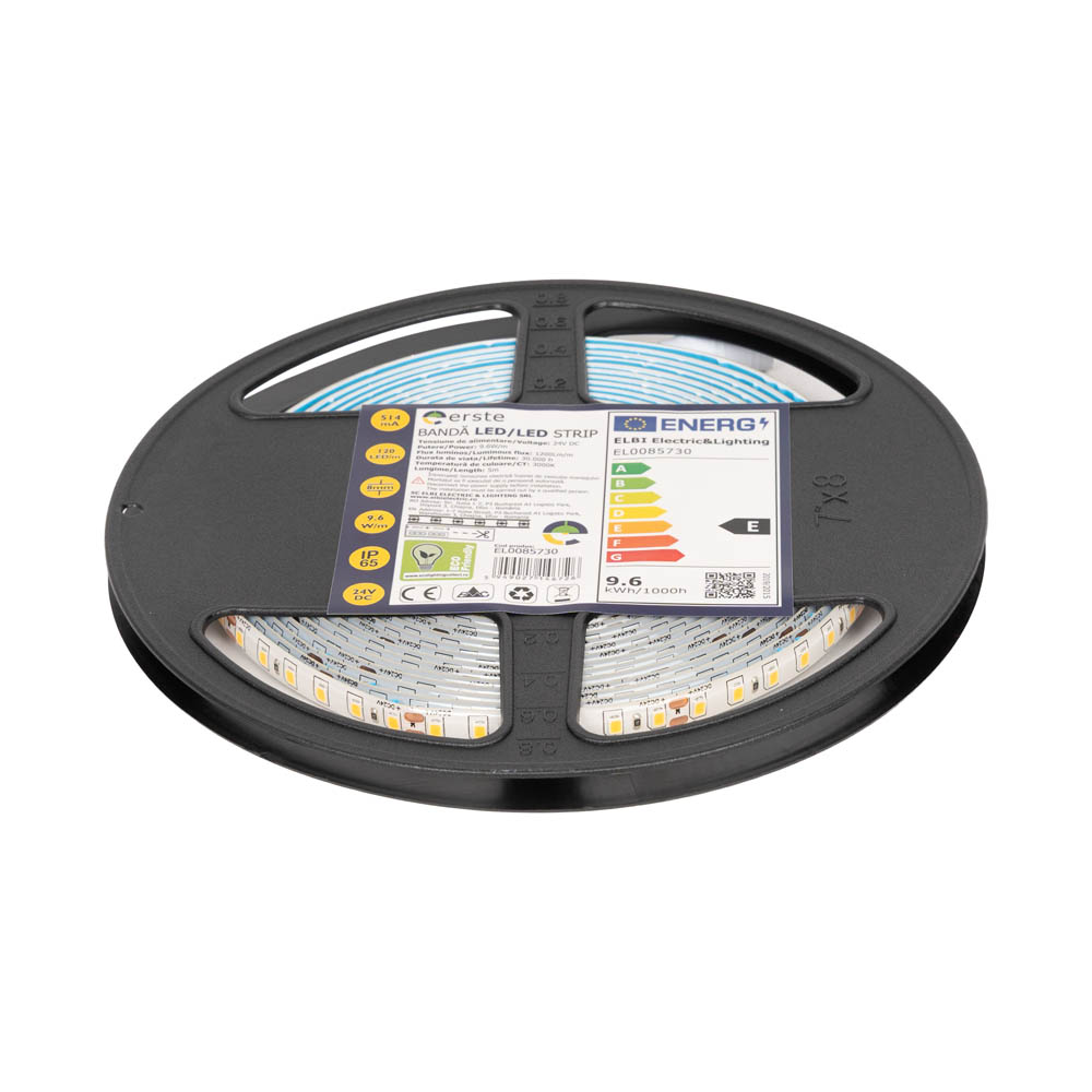 Bandă LED 24V 120 LED/m 9.6W/m 3000K IP65 Rolă 5m - ERSTE