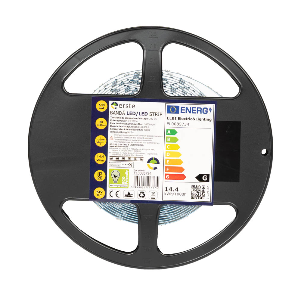 Bandă LED 24V 60 LED/m 14.4W/m 4000K IP20 Rolă 5m - ERSTE