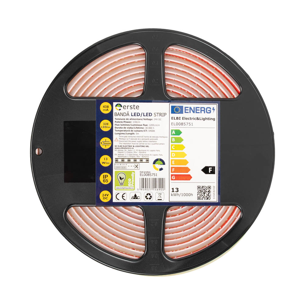 Bandă LED 24V COB 13W/m 6400K IP65 Rolă 5m - ERSTE