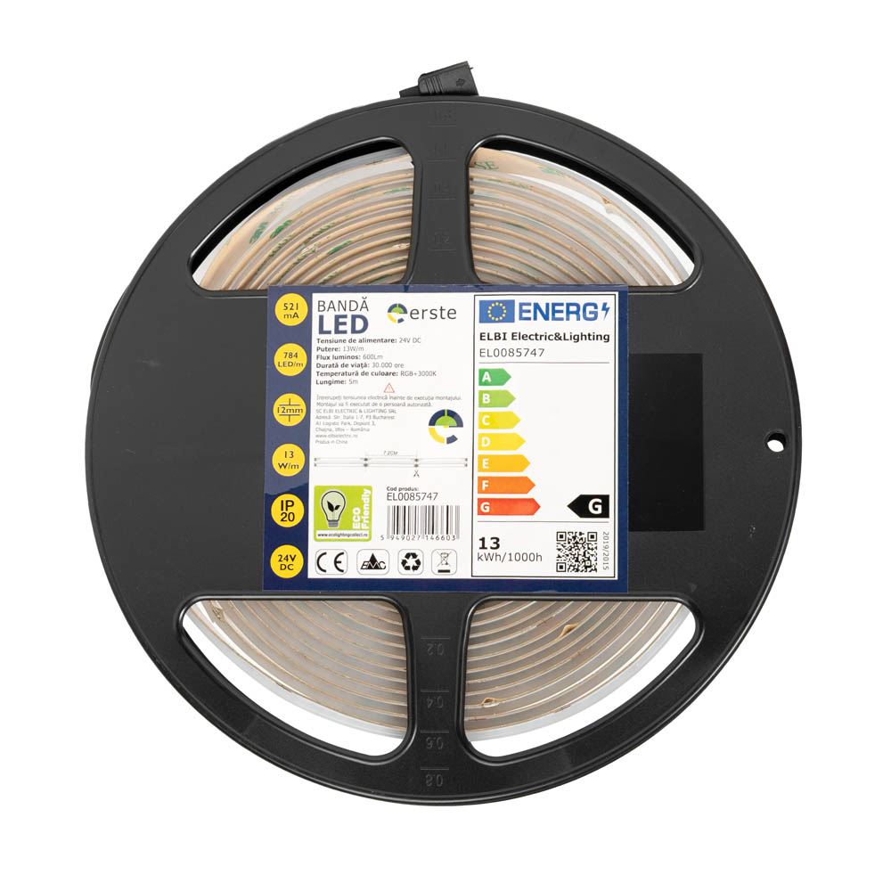 Bandă LED 24V COB 13W/m RGB + 3000K IP20 Rolă 5m - ERSTE