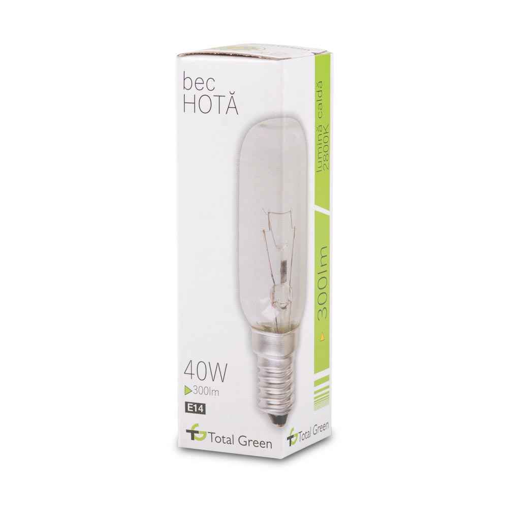 Becurile cu incandescenta marca Total Green creează contraste bogate și iluminează spațiile cu o atmosferă de curățenie și strălucire. Acestea sunt disponibile într-o gamă variată de forme și dimensiuni, fiind concepute pentru a se potrivi unei multitudini de corpuri de iluminat și aplicații. Cu o putere de 40W si o dulie de tip E14, acestea va ofera fluxul de lumina calda necesar, ajungand la valoare de 300 lm. Aceste produse sunt create special pentru a rezista la o tensiune de 220-240V,o frecventa nominala de 50-60Hz si o temperatura a mediului ambiant de -20 pana la +40 grd C pe o durata de 1000 de ore. Factorul de protectie reprezinta un avantaj, ajungand la valoarea IP20.